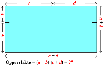 oppervlakte van de rechthoek is (a + b) (c + d)