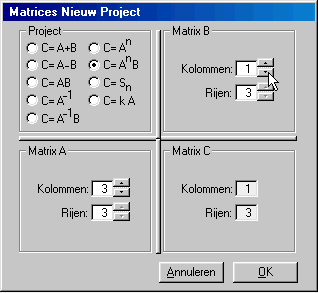 aantal kolommen van B gelijk aan 1 (= kolommatrix) door
